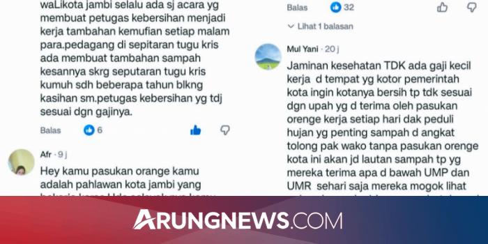 Keluhan serupa disampaikan akun Hendra Simon yang mempertanyakan kebijakan Pemerintah Kota Jambi dalam menyetujui banyak event tanpa memperhitungkan dampaknya terhadap petugas kebersihan.